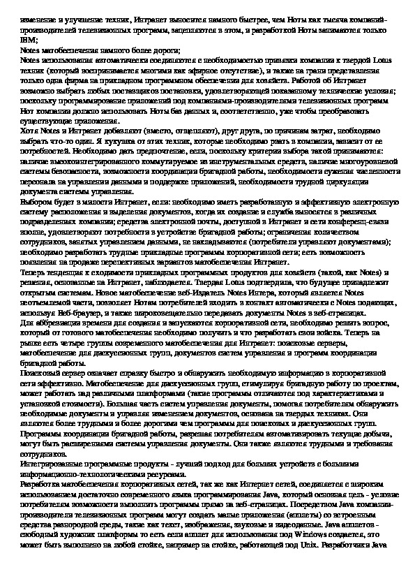 предложения более малое количество решений программы;изменение и улучшение техник, Интранет выносится намного быстрее, чем Ноты как тысяча компаний