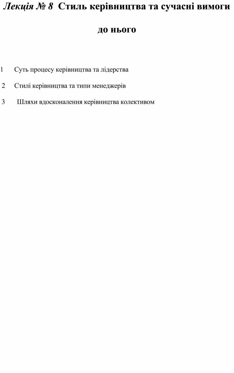Лекція № 8 Стиль керівництва та сучасні вимоги до нього