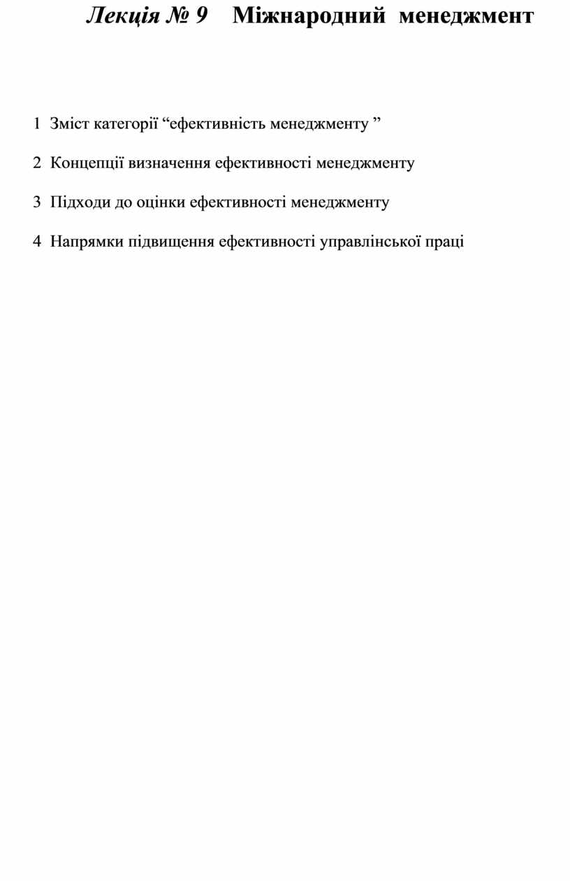 Міжнародний менеджмент - це особливий вид менеджменту, головними цілями якого виступають формування, розвиток і використання конкурентних переваг фірми за рахунок можливостей ведення бізнесу в різноманітних країнах і відповідному використанні економічних, соціальних, демографічних, культурних і інших особливостей цих країн і міжкраїнної взаємодії.
