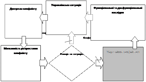 Наступна стадія конфлікту як процесу – це управління ним. Залежно від того, наскільки ефективним буде управління конфліктом, його наслідки стануть функціональними або дисфункціональними, що, у свою чергу, вплине на можливість майбутніх конфліктів: усуне причини конфліктів чи створить їх.