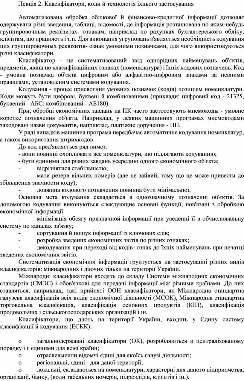Лекція 2. Класифікатори, коди й технологія їхнього застосування