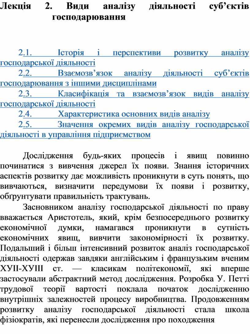 2.1. Історія і перспективи розвитку аналізу господарської діяльності