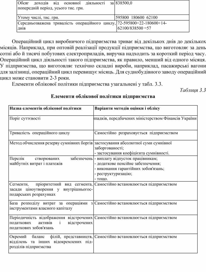 Елементи облікової політики підприємства узагальнені у табл. 3.3.