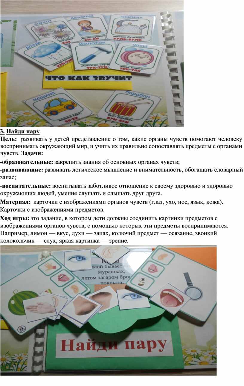 Ход игры: это задание, в котором дети должны соединить картинки предметов с изображениями органов чувств, с помощью которых эти предметы воспринимаются. Например, лимон — вкус, духи — запах, колючий предмет — осязание, звонкий колокольчик — слух, яркая картинка — зрение.