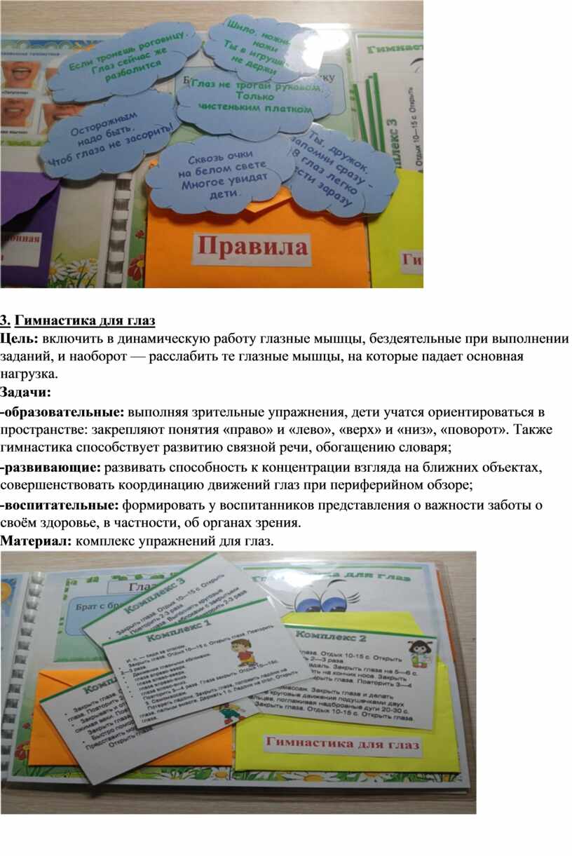 -воспитательные: формировать у воспитанников представления о важности заботы о своём здоровье, в частности, об органах зрения.