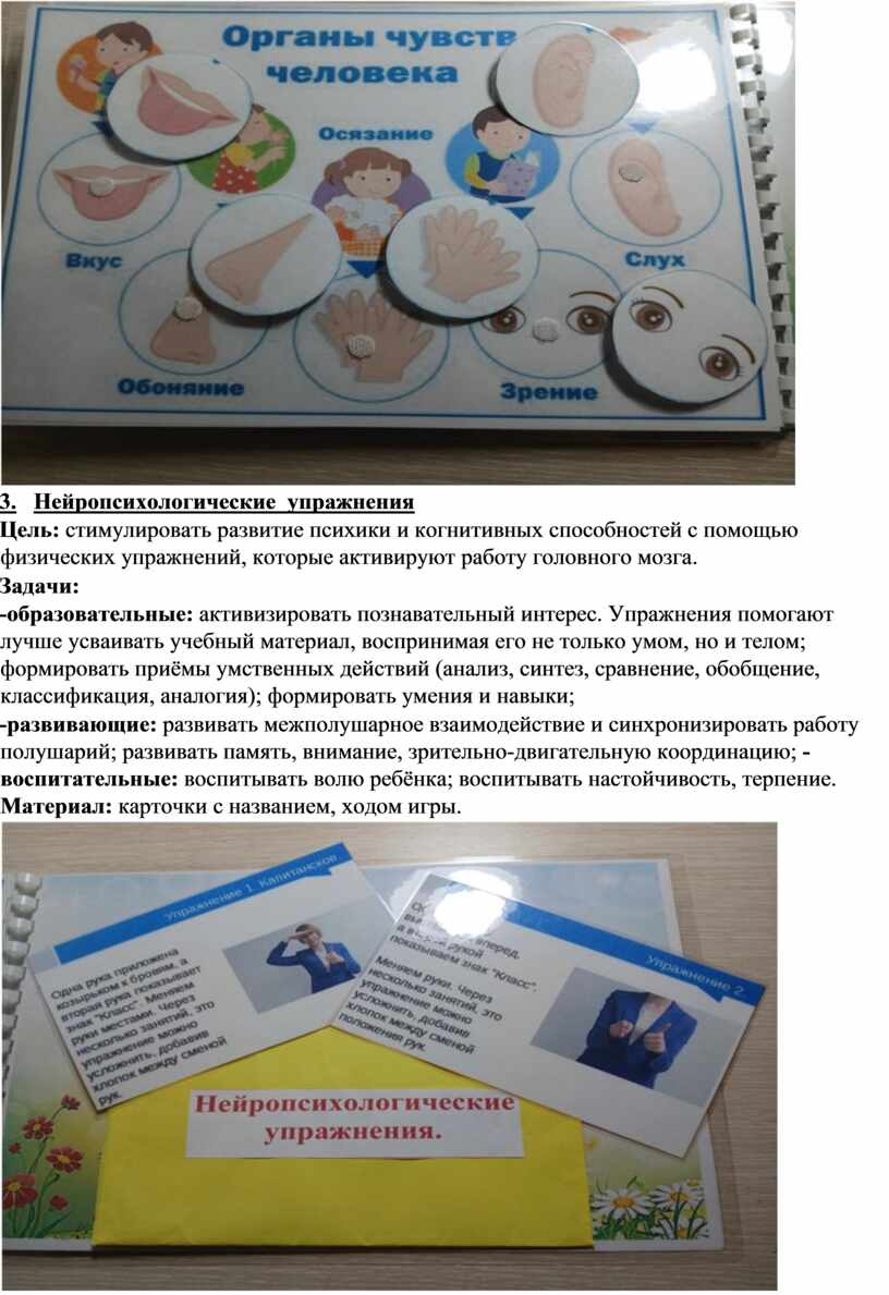 Цель: стимулировать развитие психики и когнитивных способностей с помощью физических упражнений, которые активируют работу головного мозга.