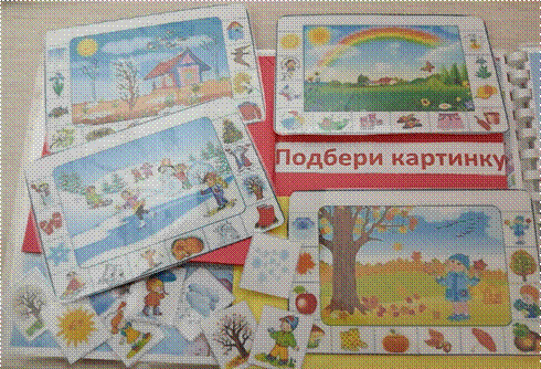 Цель: учить детей называть времена года по их признакам, находить соответствующие картинки, развивать зрительную память, внимание, речь.
