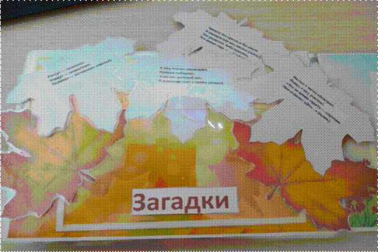 -развивающие: развивать наблюдательность, интерес к окружающей природе; -воспитательные: воспитывать умение внимательно слушать воспитателя и сверстников; воспитывать интерес к окружающему миру, любознательность. Материал: карточки с загадками.