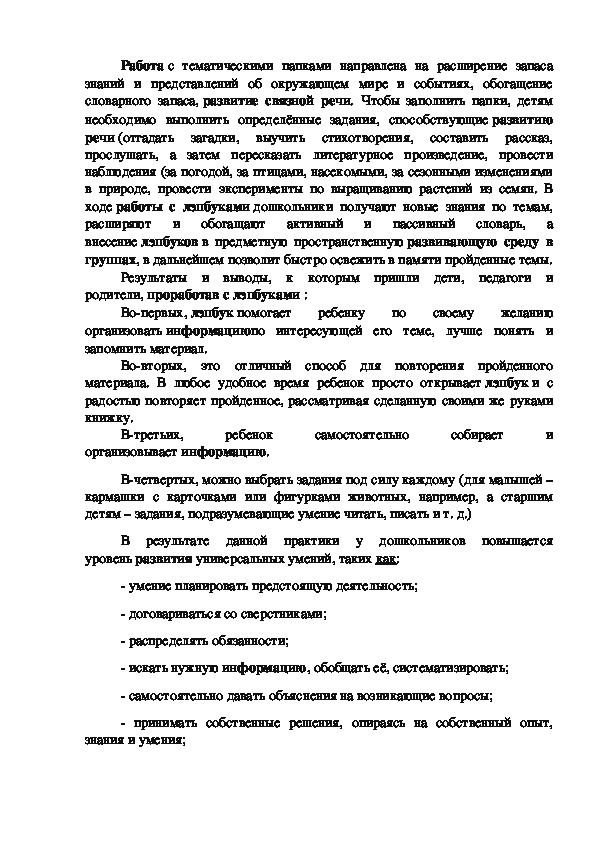 ходе работы с лэпбуками дошкольники получают новые знания по темам,