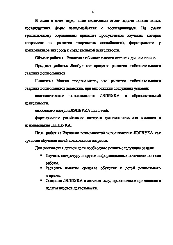 Предмет работы: Лэпбук как средство развития любознательности