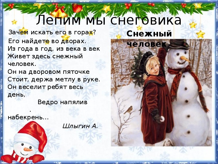 Презентация знакомит со стихотворениями о снеговике, предлагает их выразительное чтение, а понравившиеся выучить наизусть. Предназначена для детей 7 - 10 лет.