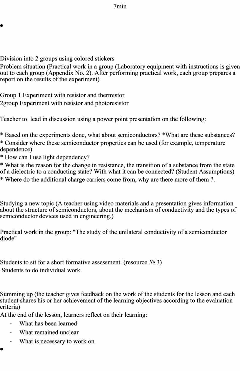All students will know substances related to semiconductors, about the mechanism of semiconductor conductivity, the scope of semiconductors. Idea generators (students with high motivation) will support their classmates in a group. Throughout the lesson the teacher will support the students. The following differentiation principles will be implemented: creativity, deepening of the topic, individual approach and differentiated approach when creating a pair and a group. |