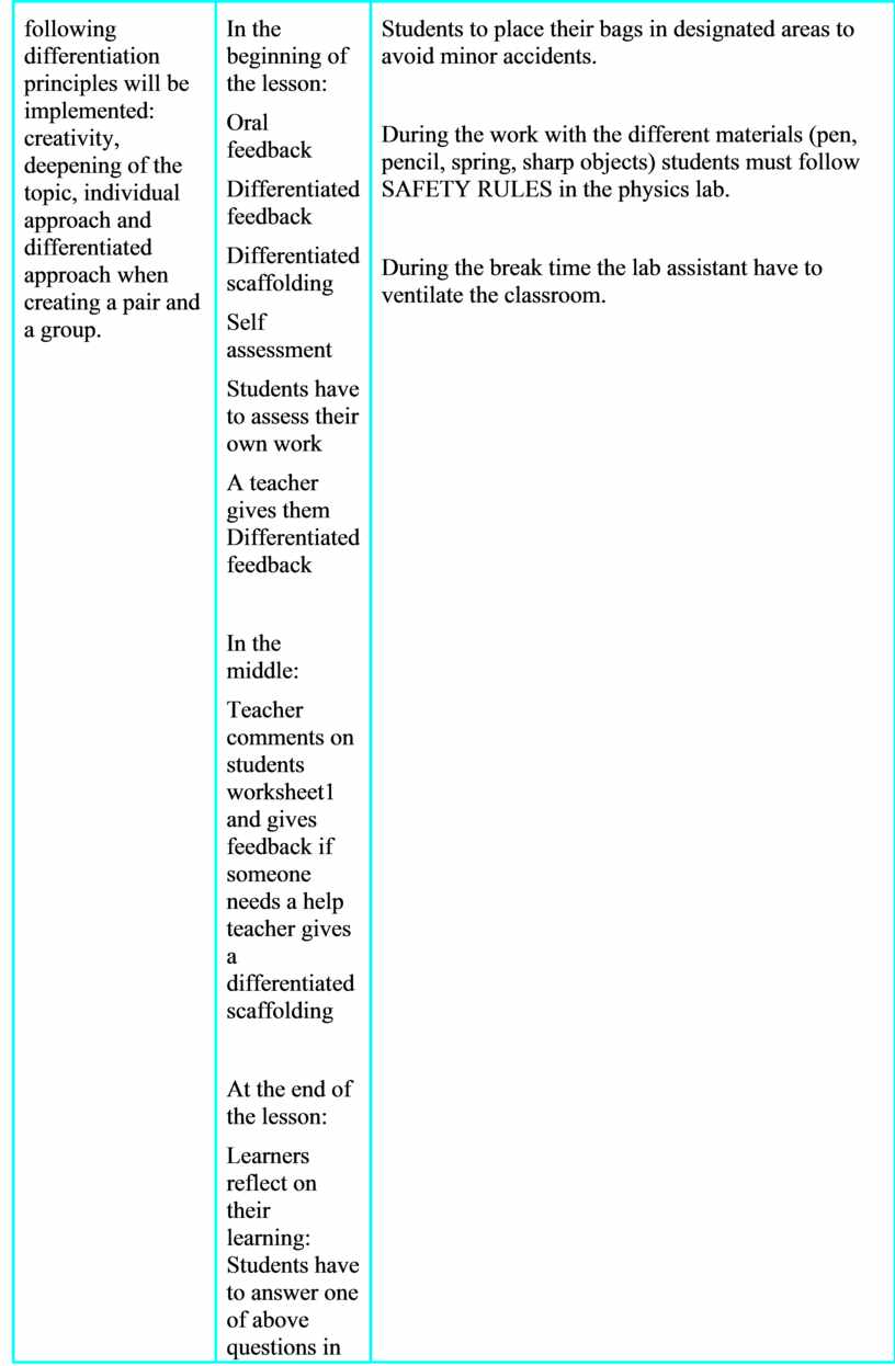 During the work with the different materials (pen, pencil, spring, sharp objects) students must follow SAFETY RULES in the physics lab.