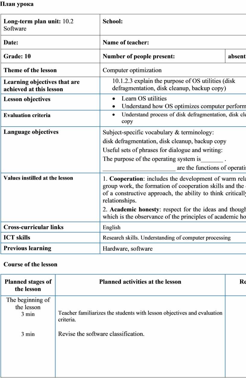 Subject-specific vocabulary & terminology: disk defragmentation, disk cleanup, backup copy Useful sets of phrases for dialogue and writing: The purpose of the operating system is_______ . _______________________ are the functions of operating systems. |