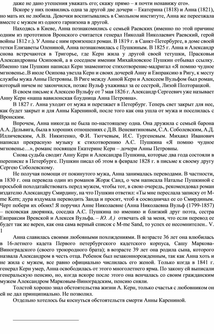 Толстой хорошо знал обстоятельства жизни А. Керн, только счастья с любовником он ей не дал принципиально. Не позволил.