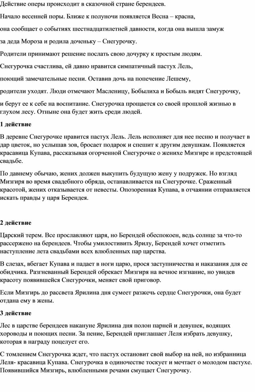 Но мудрый царь Берендей знает – после смерти Снегурочки солнце вновь вернется в Берендеево царство, даря берендеям счастье и благоденствие.