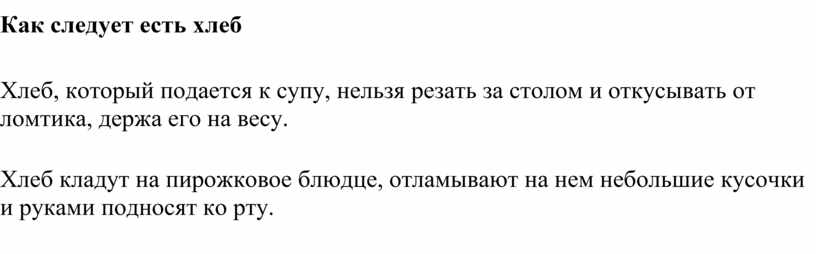 Хлеб, который подается к супу, нельзя резать за столом и откусывать от ломтика, держа его на весу.