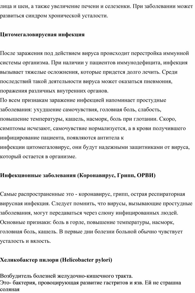 По всем признакам заражение инфекцией напоминает простудные заболевания: ухудшение самочувствия, головная боль, слабость, повышение температуры, кашель, насморк, боль при глотании. Скоро, симптомы исчезают, самочувствие нормализуется, а в крови получившего инфицирование пациента, появляются антитела к инфекции цитомегаловирус, они будут надежными защитниками от вируса, который остается в организме.