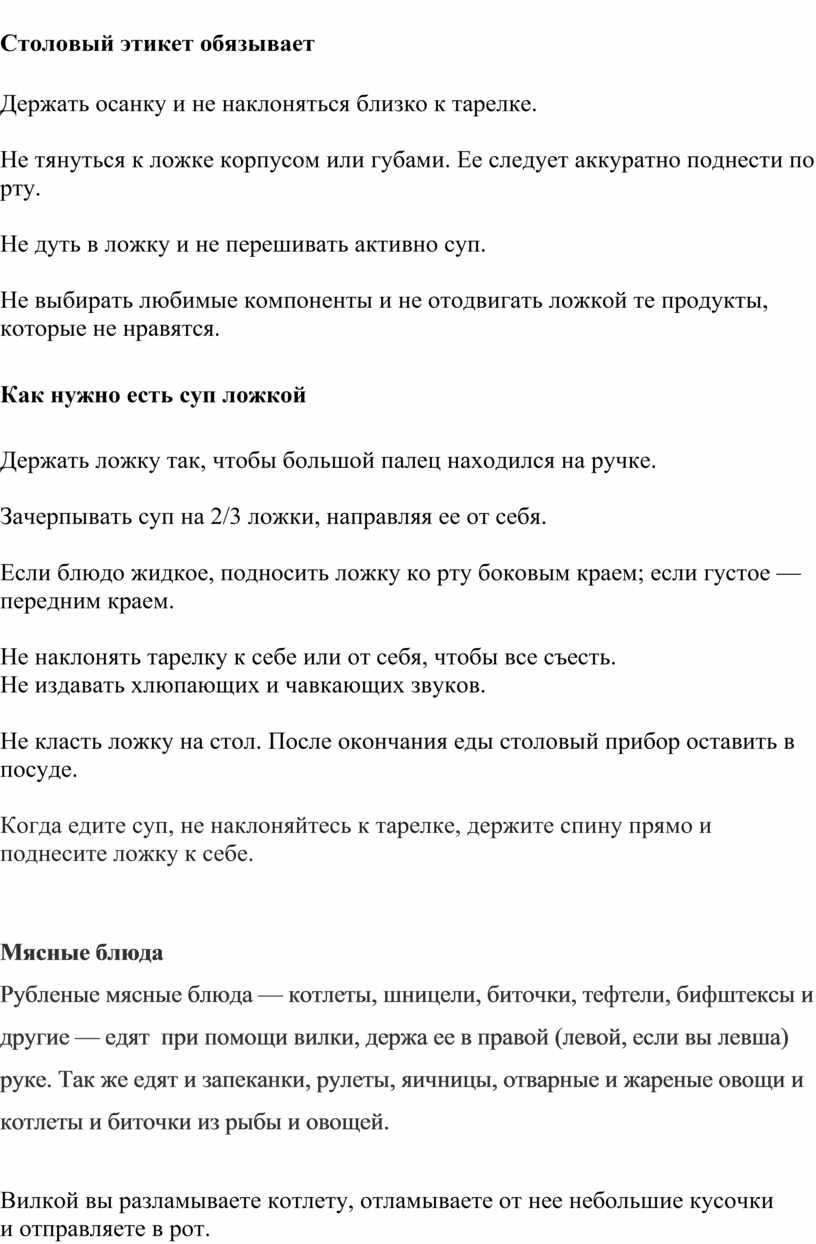 Не наклонять тарелку к себе или от себя, чтобы все съесть.