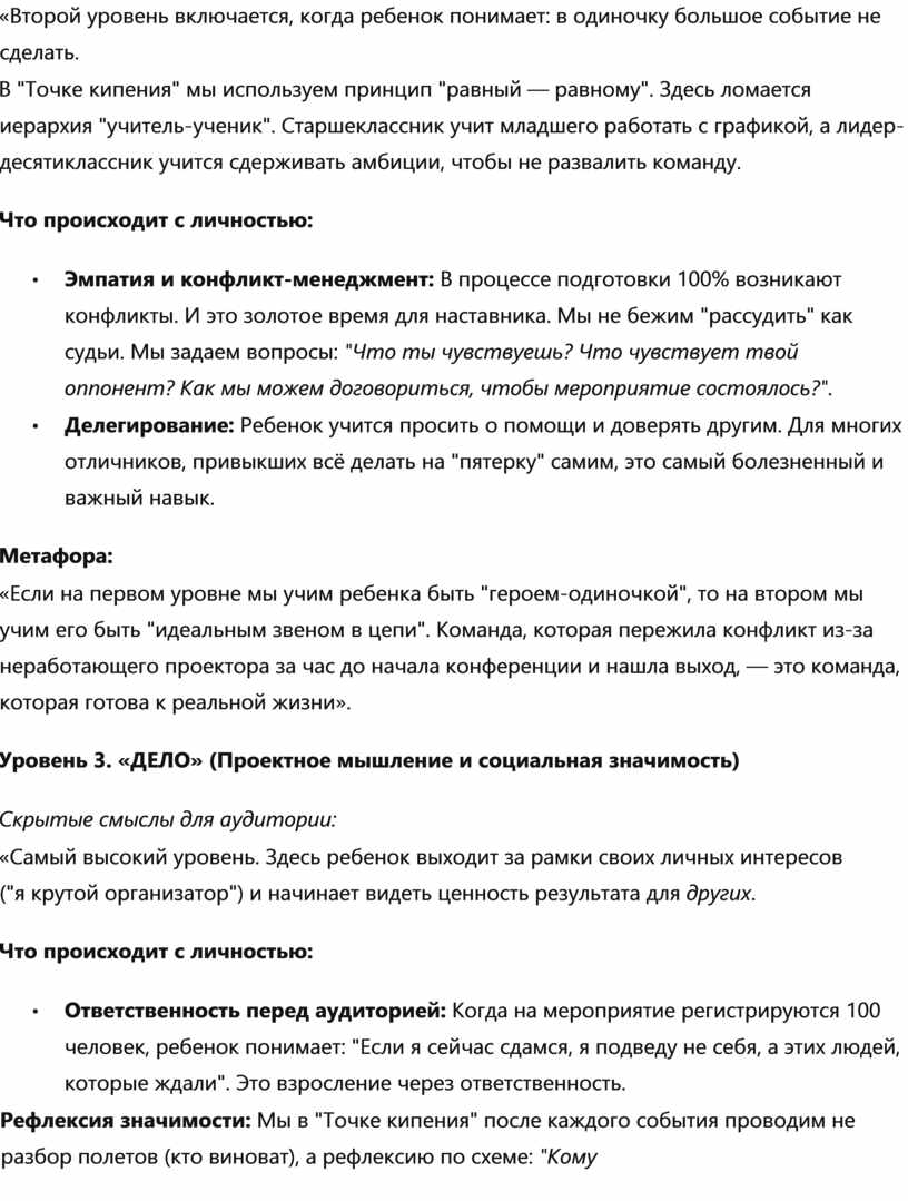 «Любое мероприятие в "Точке кипения" — это не просто "сделать красиво". Если мы смотрим на него как на тренажер личности, мы видим три уровня, которые последовательно включаются у ребенка».