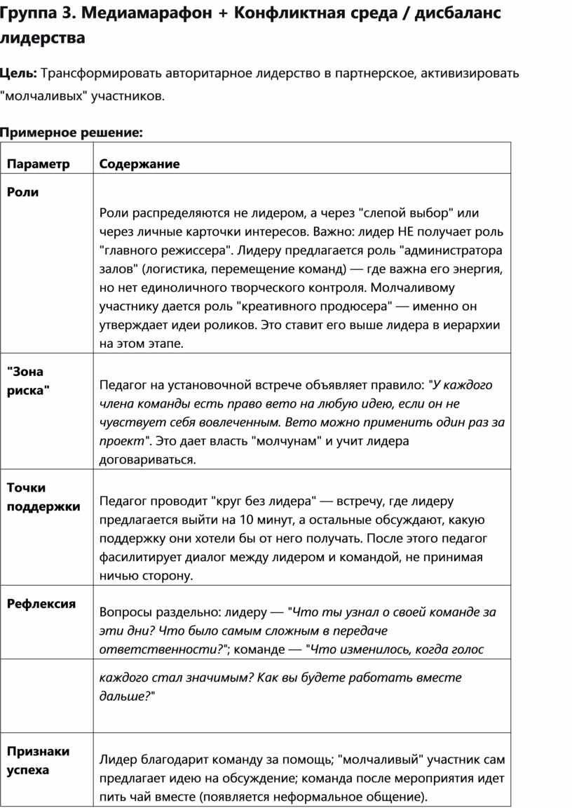 Цель: Трансформировать авторитарное лидерство в партнерское, активизировать "молчаливых" участников.