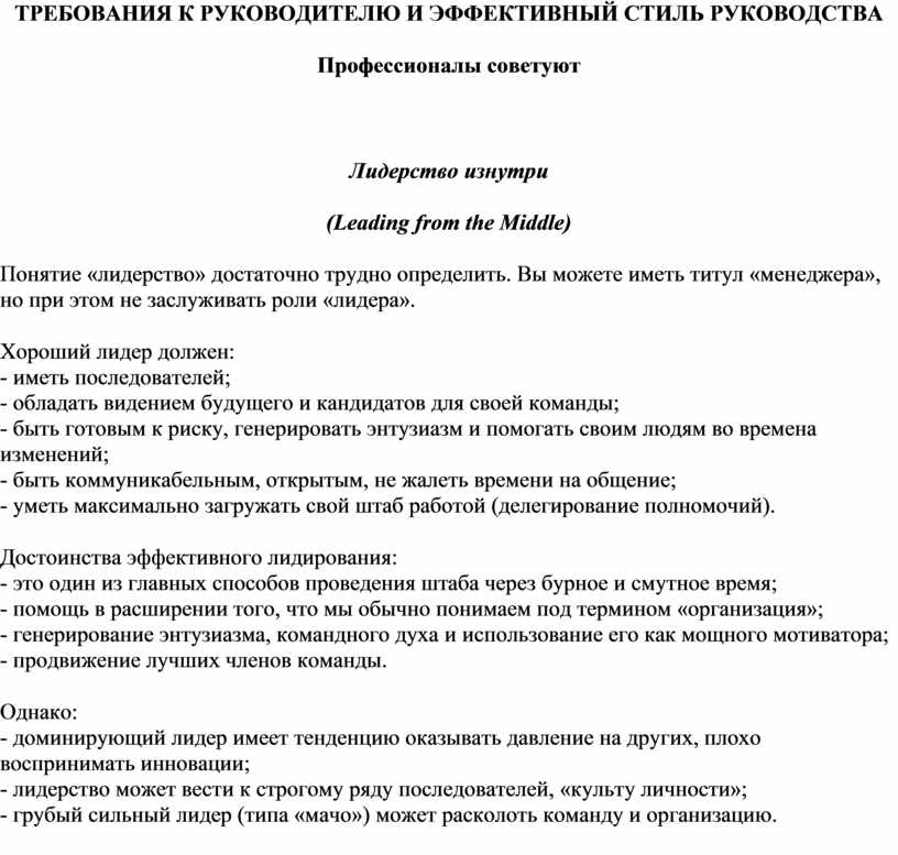 ТРЕБОВАНИЯ К РУКОВОДИТЕЛЮ И ЭФФЕКТИВНЫЙ СТИЛЬ РУКОВОДСТВА