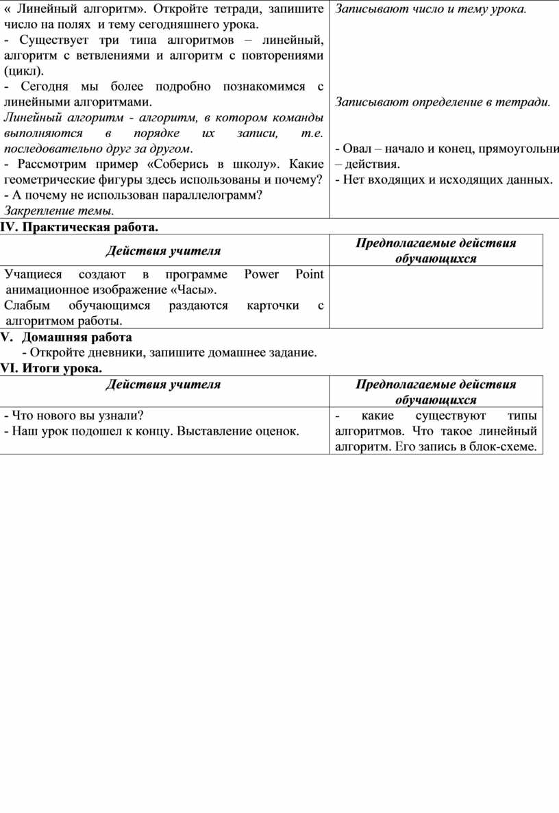 - какие существуют типы алгоритмов. Что такое линейный алгоритм. Его запись в блок-схеме. |