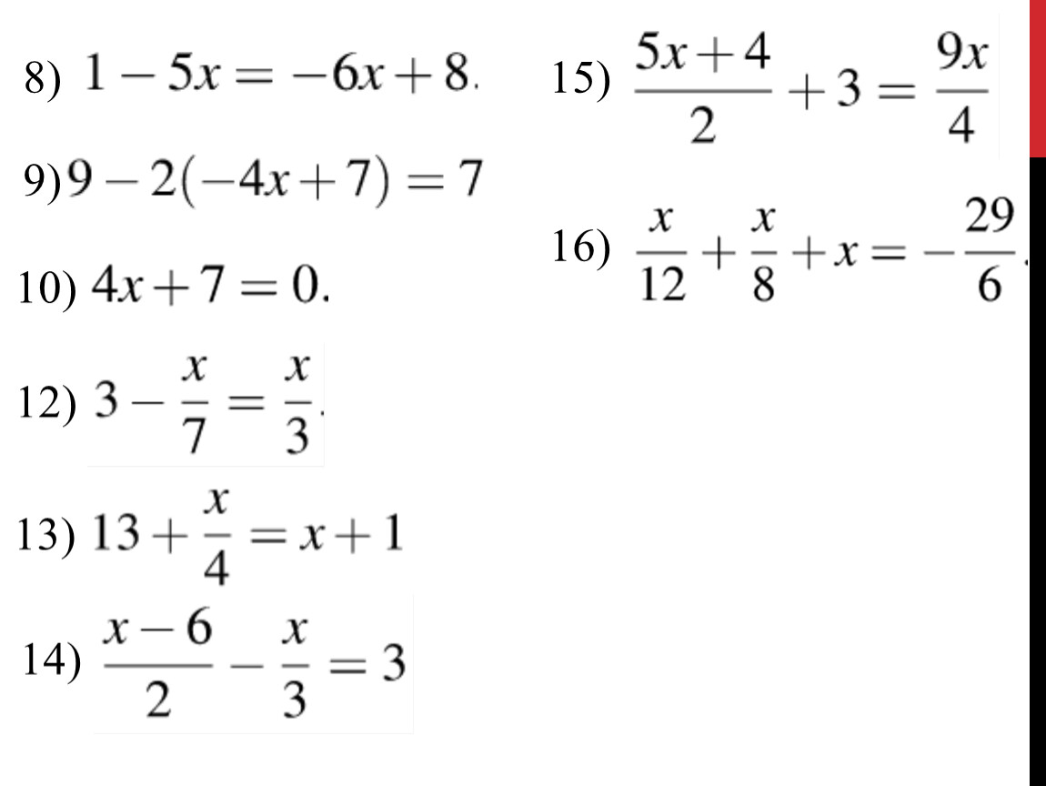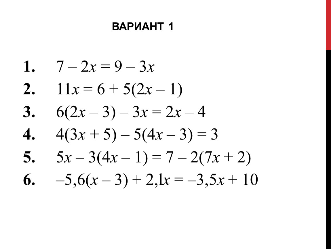 6. –5,6(x – 3) + 2,lx = –3,5x + 10