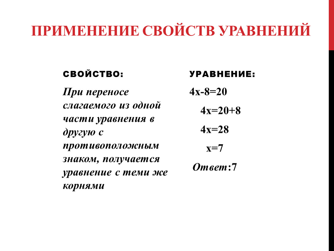 При переносе слагаемого из одной части уравнения в другую с противоположным знаком, получается уравнение с теми же корнями