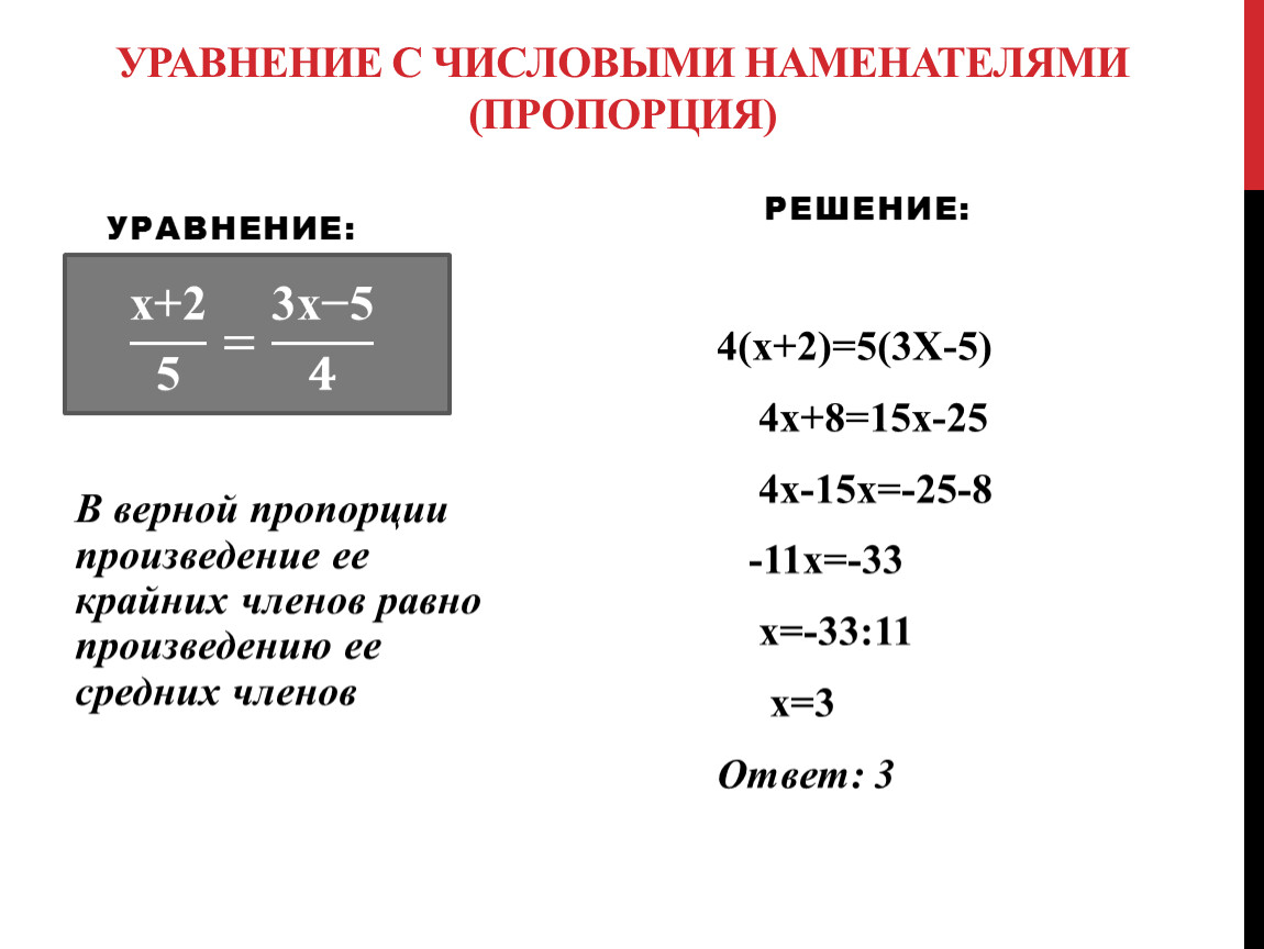 В верной пропорции произведение ее крайних членов равно произведению ее средних членов