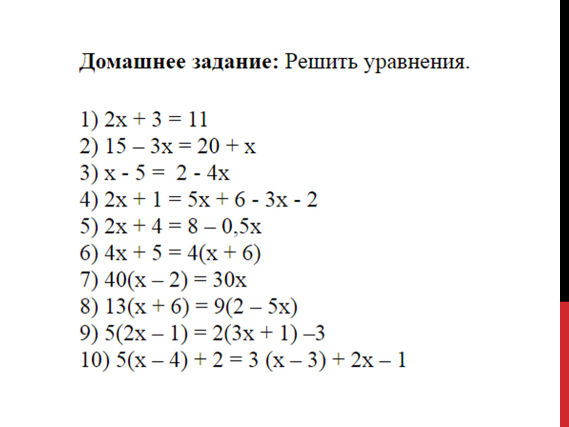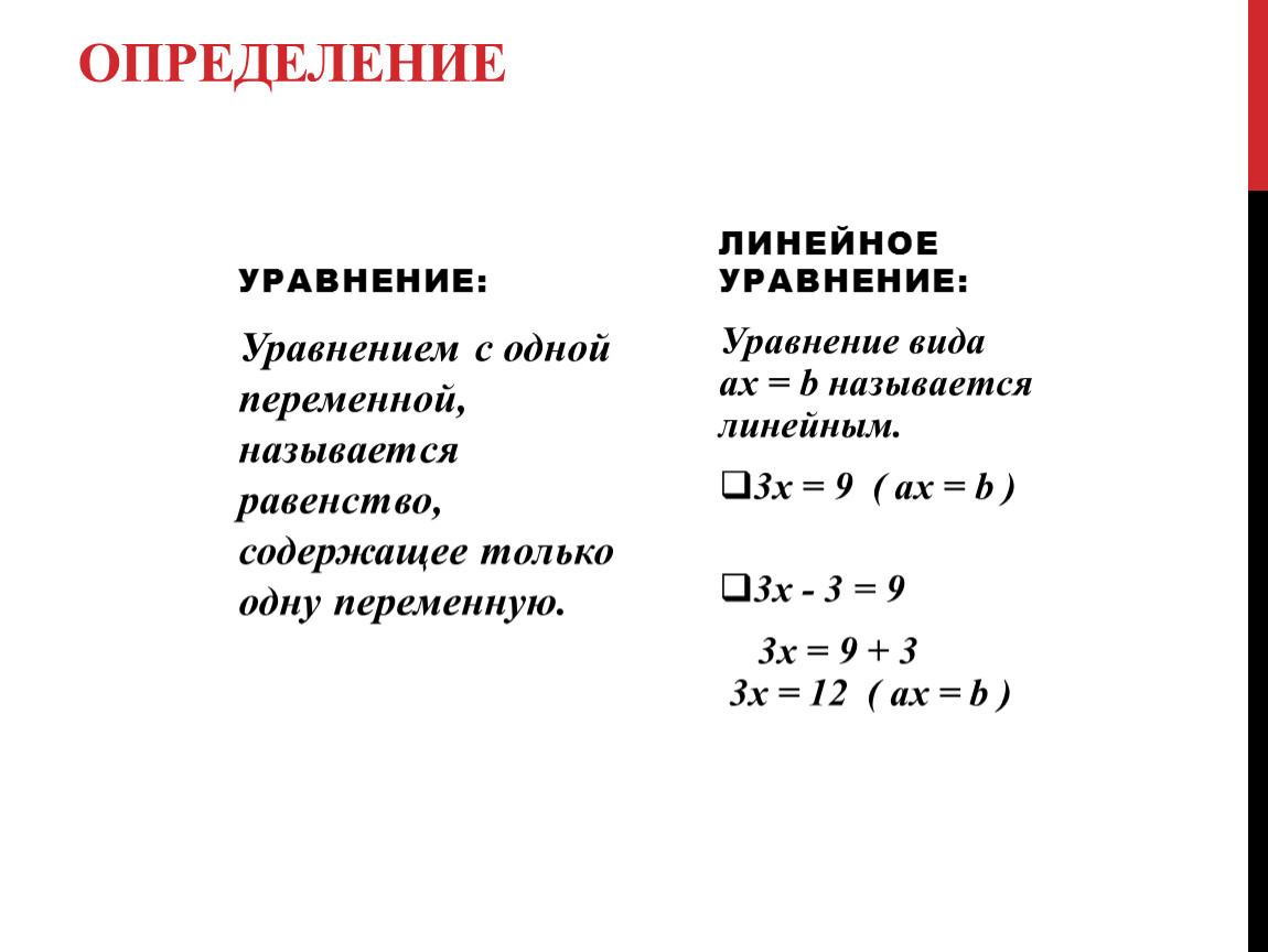 Уравнением с одной переменной, называется равенство, содержащее только одну переменную.