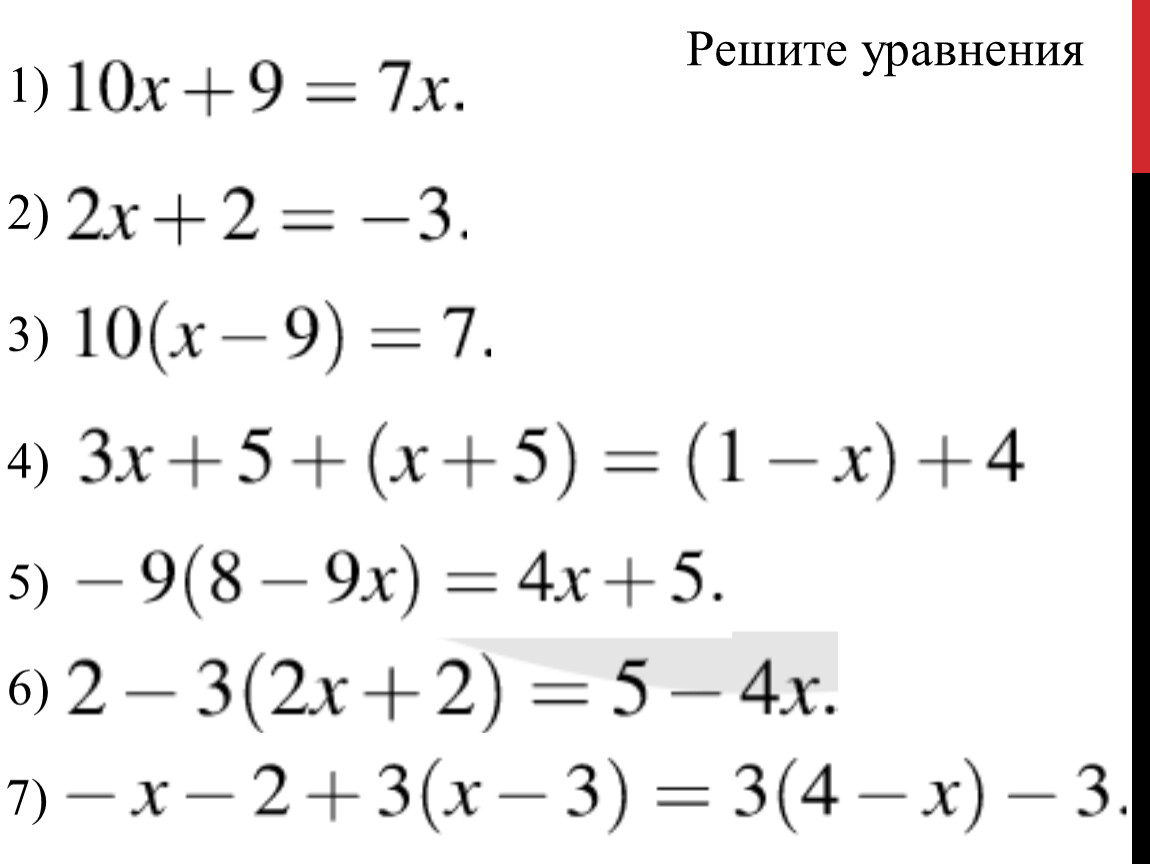 4. 7х – 3(4х – 3) = 7(3х + 5)