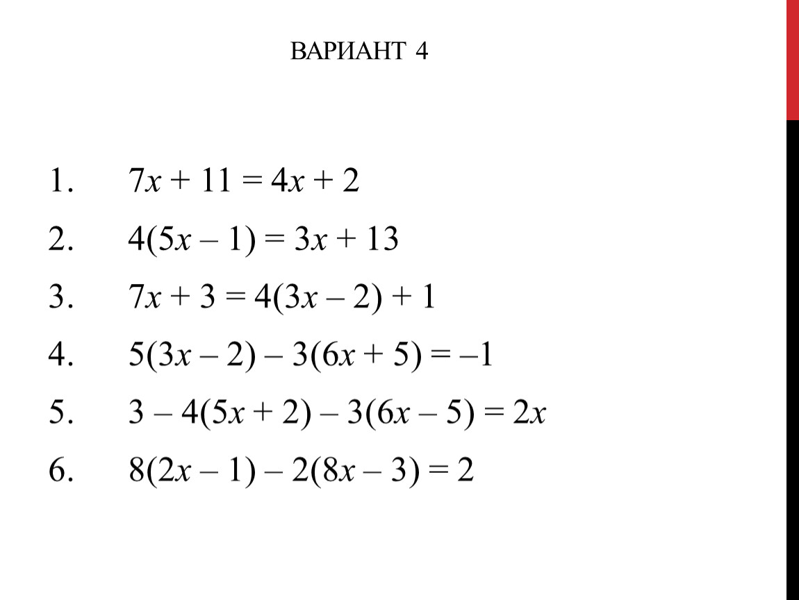 4. 4(3х + 5) – 5(4х – 3) = 3