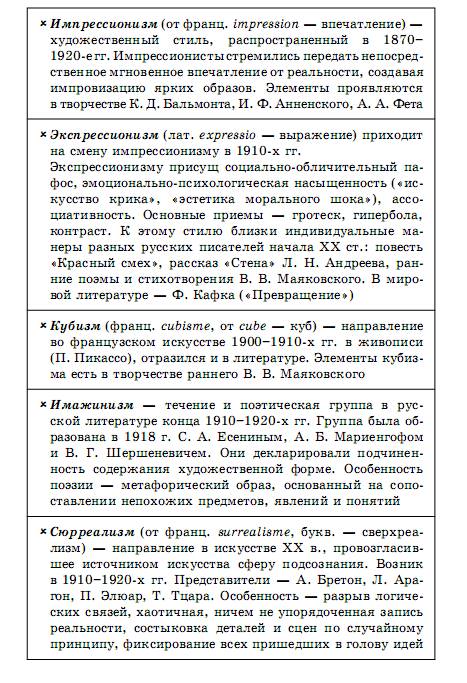 литература в схемах и таблицах
