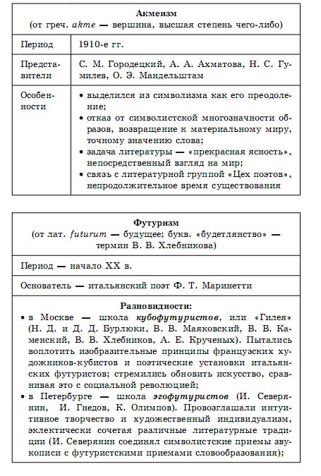 литература в схемах и таблицах