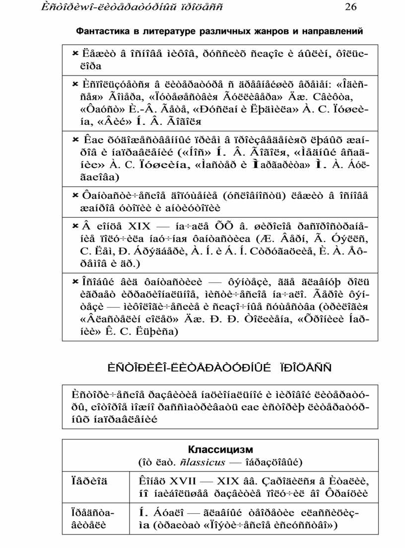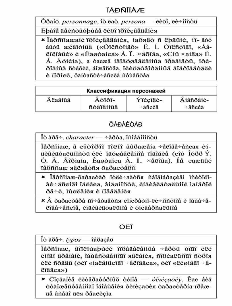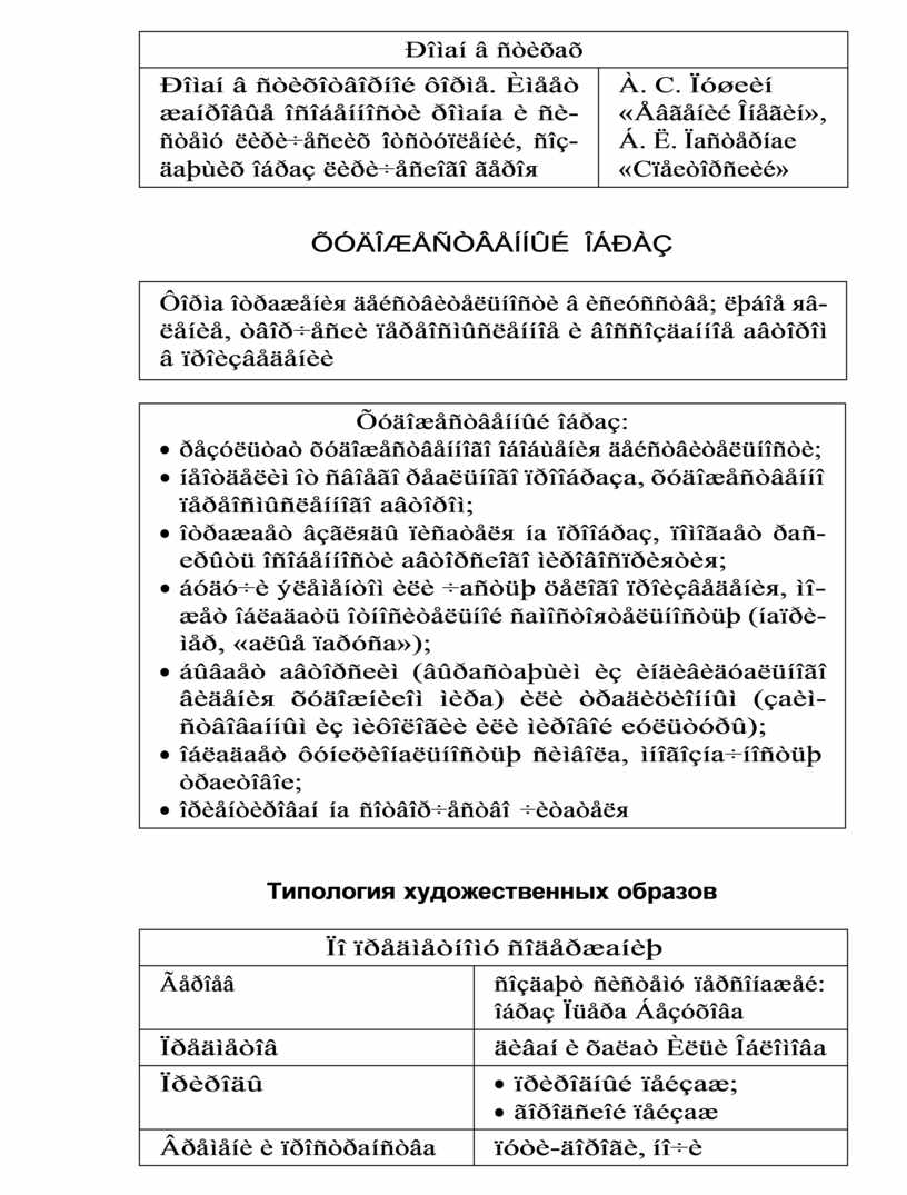 Òåïåðü ñîáñòâåííî îá ýòîé êíèãå. Îíà ñîñòîèò èç äâóõ ðàç- äåëîâ: òåîðåòè÷åñêîãî è àíàëèòè÷åñêîãî. Ïåðâûé ðàçäåë ïî- ìîæåò îòâåòèòü íà âîïðîñû, ñâÿçàííûå ñ ïîíèìàíèåì ñàìûõ ðàçëè÷íûõ ÿâëåíèé õóäîæåñòâåííîé ëèòåðàòóðû (ôîëüêëîð, êëàññèöèçì, ðîìàíòèçì, ðåàëèçì è ò. ä.) Òàêæå çäåñü äàþò- ñÿ ñâåäåíèÿ ïî òåîðèè ëèòåðàòóðû, íåîáõîäèìûå äëÿ ñàìîñòî- ÿòåëüíîãî àíàëèçà ïðîèçâåäåíèÿ (àíòèòåçà, ïîðòðåò, ïåéçàæ, ðåìàðêà, êîìïîçèöèÿ, æàíðîâàÿ ñèñòåìà è ò. ä.) Èçëîæåííûå òåçèñíî è ñíàáæåííûå ïðèìåðàìè, îíè ôîðìèðóþò íå òîëüêî ëèòåðàòóðîâåä÷åñêèé, íî è îáùèé êóëüòóðîëîãè÷åñêèé ïîíÿ- òèéíûé àïïàðàò. Îñîáîå âíèìàíèå óäåëåíî òåîðèè ñòèõîñëî- æåíèÿ (âèäû ðèôì) è ñðåäñòâàì õóäîæåñòâåííîãî èçîáðàæå- íèÿ (òðîïàì).