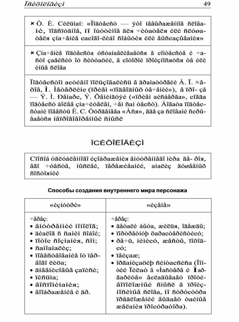 Cïîñîáû ñîçäaíèя âíóòðåííåãî ìèða ïåðñîíaæa......................... 49