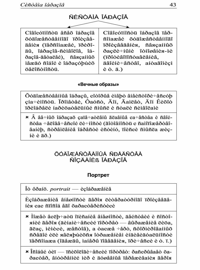 ÷àòü ñî âòîðîé ÷àñòè, ñ êîíêðåòíîãî ïðîèçâåäåíèÿ. Åñëè æå çíà÷åíèå òåðìèíà èëè åãî èñïîëüçîâàíèå ïðè àíàëèçå ïðî- èçâåäåíèÿ íåïîíÿòíî, òîãäà îáðàùàéòåñü ê ïåðâîé, ñïðàâî÷- íîé, ÷àñòè. Êñòàòè, ìíîãèå ïîíÿòèÿ, îñîáåííî âûñîêîãî óðîâ- íÿ îáîáùåíèÿ, äàíû, ìîæåò áûòü, ÷ðåçìåðíî ïîäðîáíî — ýòî