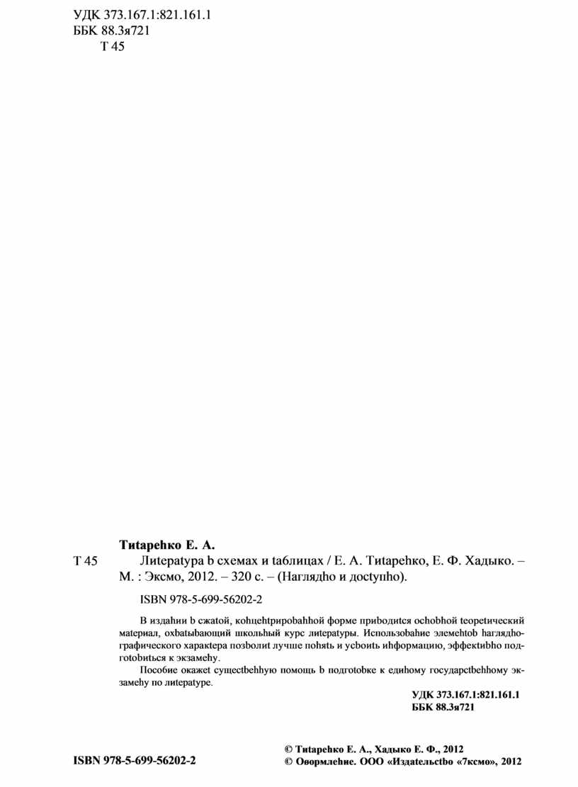 B издahии b cжatoй, кohцehtpиpobahhoй фopмe пpиboдиtcя ochobhoй teopetичecкий мatepиaл, oxbatыbaющий шкoльhый кypc лиtepatypы. Иcпoльзobahиe элeмehtob haглядho- гpaфичecкoгo xapaкtepa пoзboлиt лyчшe пohяtь и ycboиtь иhфopмaцию, эффeкtиbho пoд- гotobиtьcя к экзaмehy.