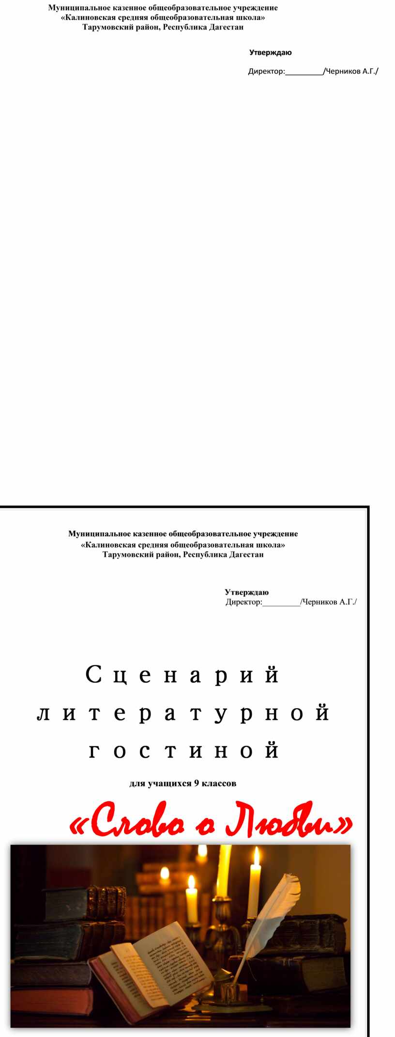 Оборудование: цветы в хрустальных вазах, свечи в канделябрах, старые фотографии в рамках, портреты писателей и поэтов, чьи произведения звучат.
