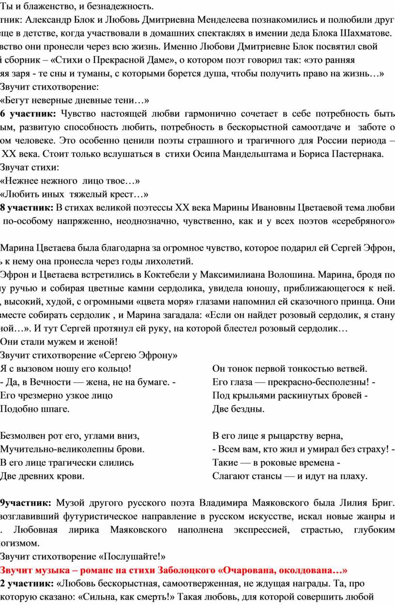 8 участник: В стихах великой поэтессы XX века Марины Ивановны Цветаевой тема любви звучит по-особому напряженно, неоднозначно, чувственно, как и у всех поэтов «серебряного» века.