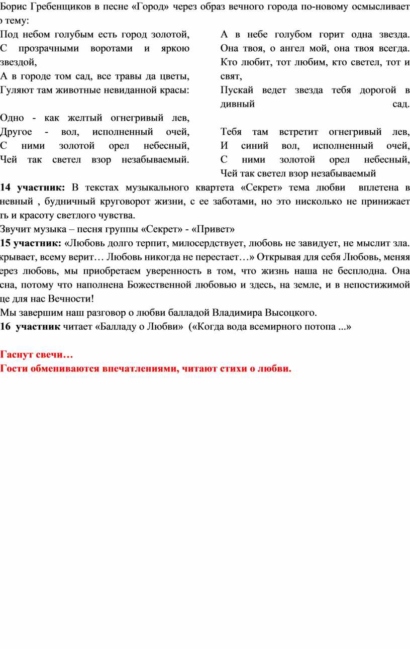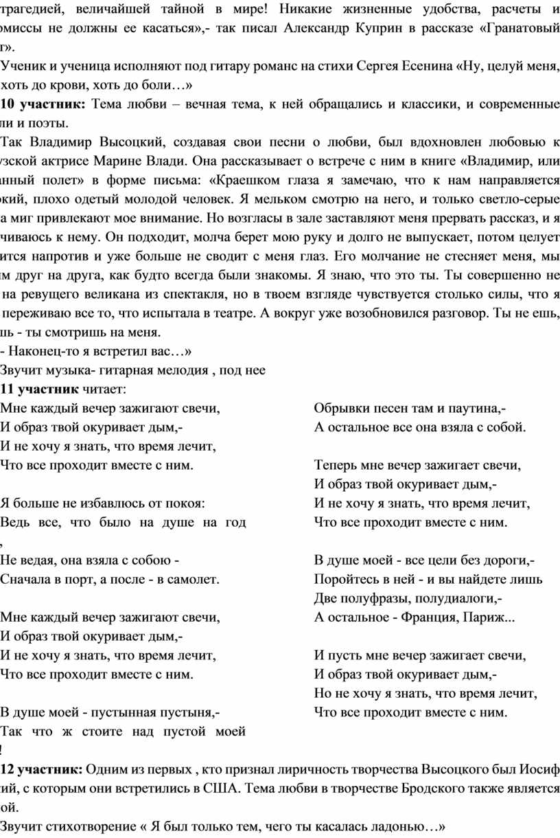 13участник: Конец XX века стал эпохой расцвета рок-поэзии в стране. Виктор Цой, Андрей Макаревич, Юрий Шевчук, Александр Башлачев, Игорь Тальков - все они обращались к теме любви.