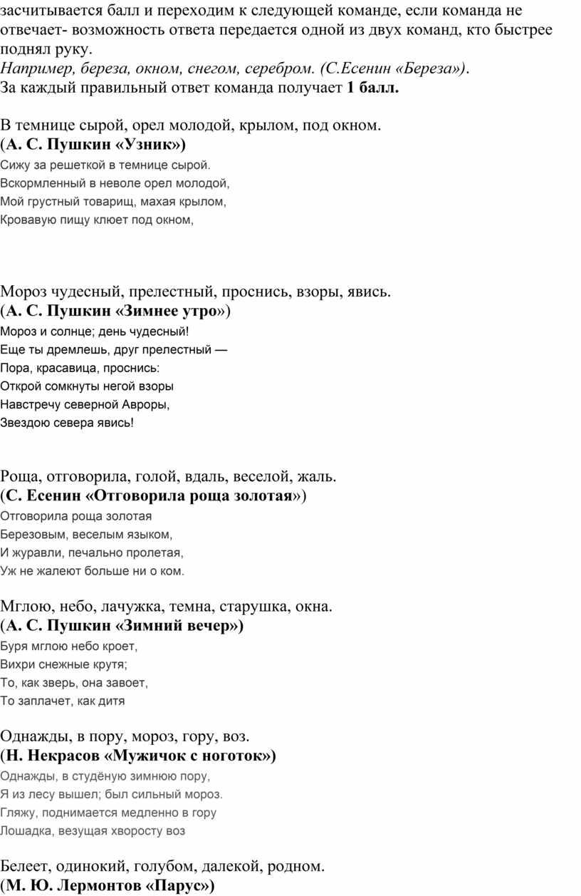 1 ведущий: В этом конкурсе вам нужно будет узнай автора или произведение по окончанию его фраз. Команде зачитываются фразы, если она отвечает, то засчитывается балл и переходим к следующей команде, если команда не отвечает- возможность ответа передается одной из двух команд, кто быстрее поднял руку.
