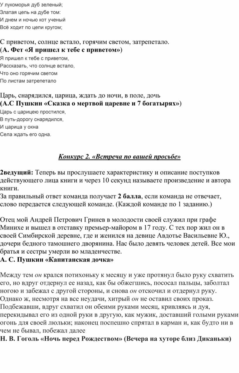 2. Конкурс «Встреча по вашей просьбе». Дается характеристика и описание поступков действующего лица книги и через 3 секунды команды называют его имя, произведение, в котором он действует, и автора книги.