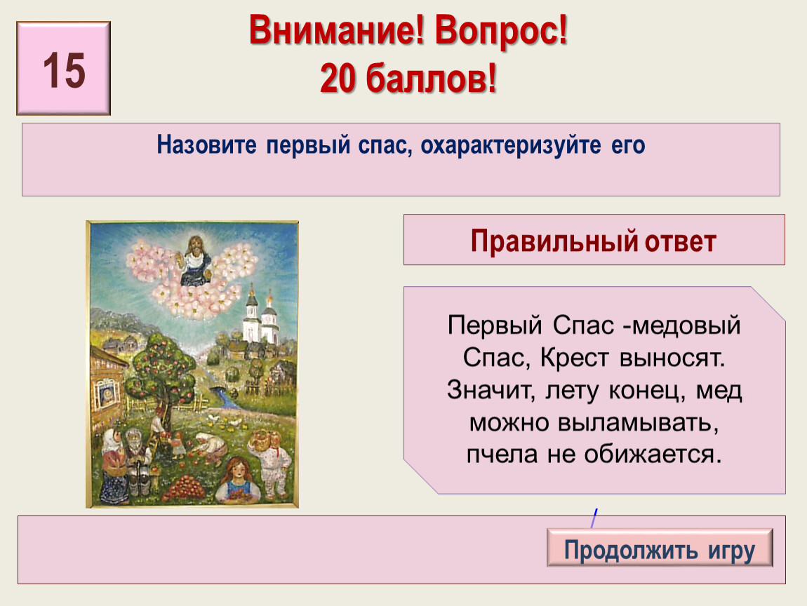Первый Спас -медовый Спас, Крест выносят. Значит, лету конец, мед можно выламывать, пчела не обижается./