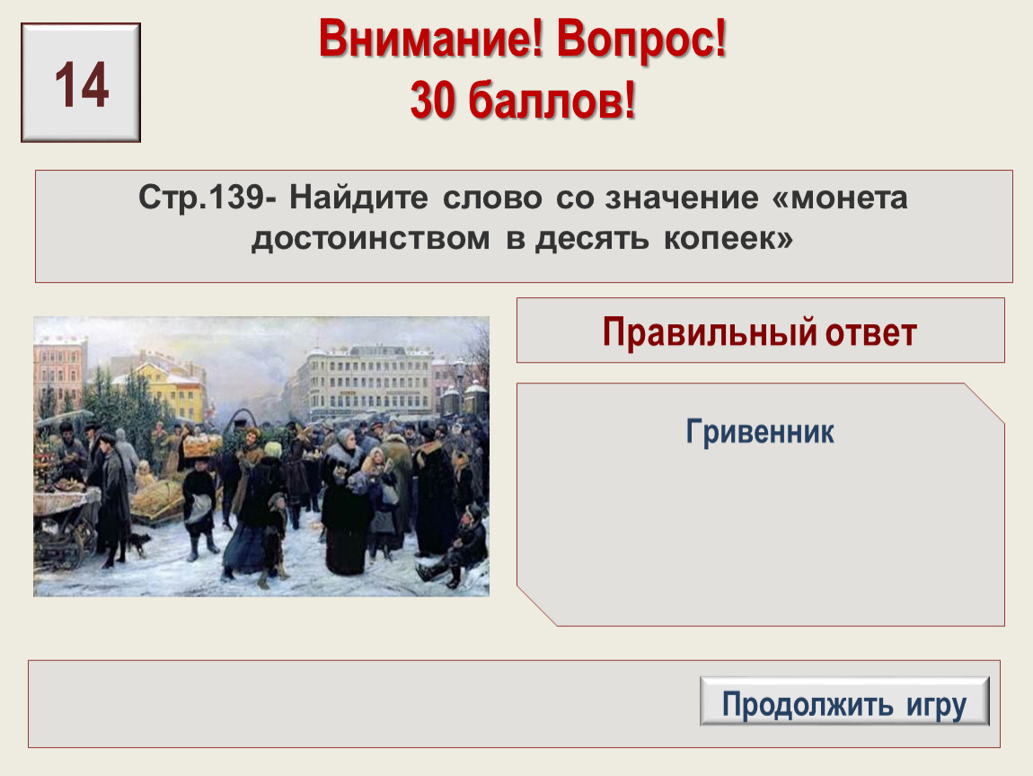 Стр.139- Найдите слово со значение «монета достоинством в десять копеек»