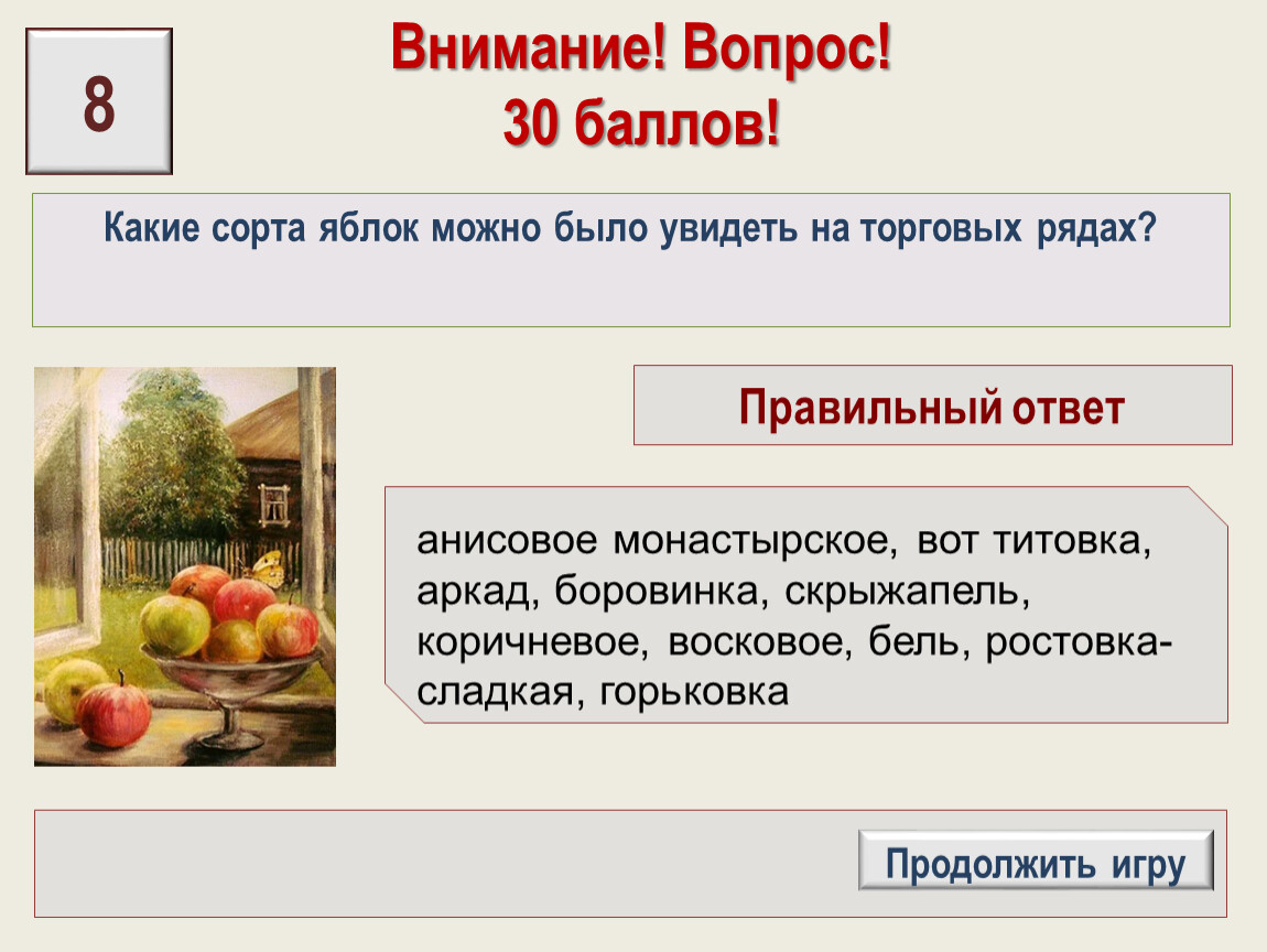 Какие сорта яблок можно было увидеть на торговых рядах?