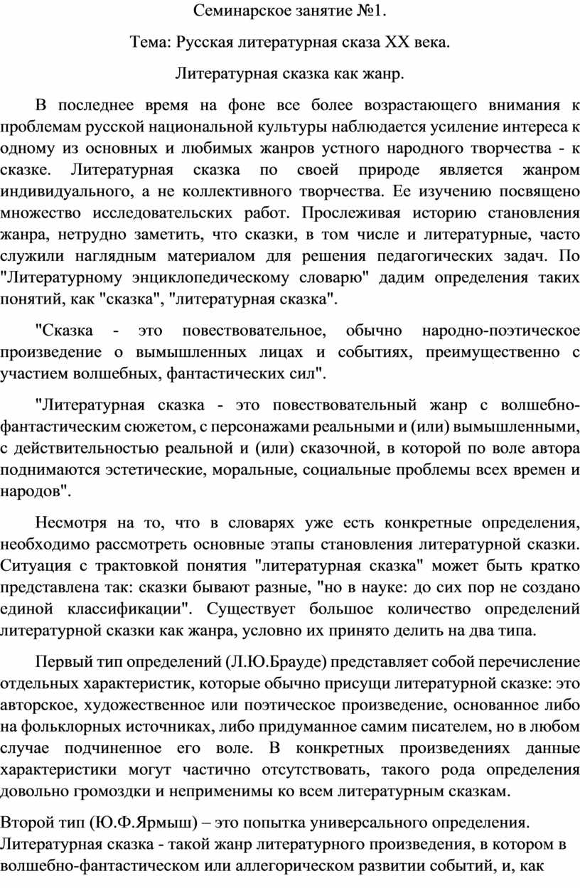 Литературная сказка как жанр