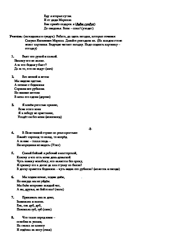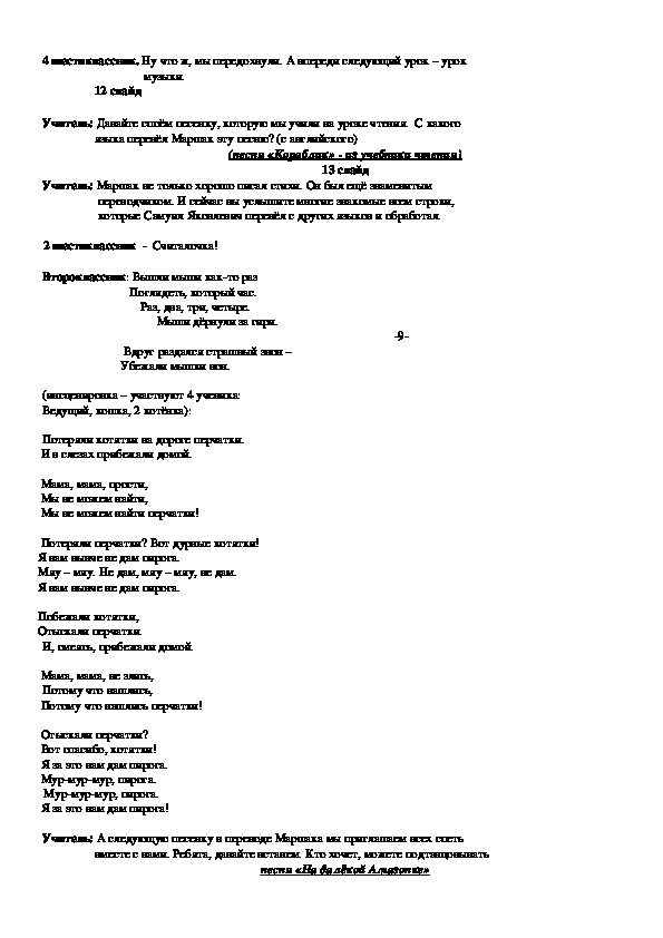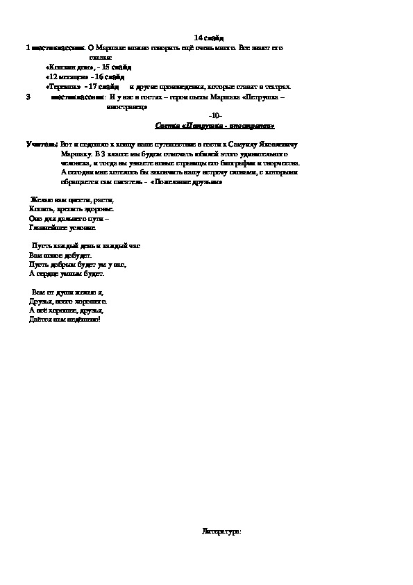 Учитель: Вот и подошло к концу наше путешествие в гости к Самуилу Яковлевичу