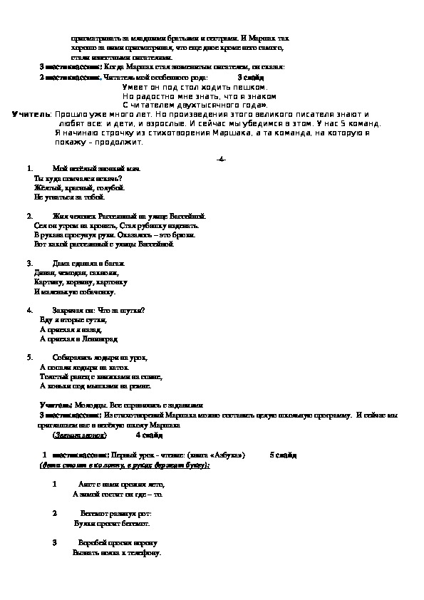 Учитель: Маршак не только хорошо писал стихи. Он был ещё знаменитым